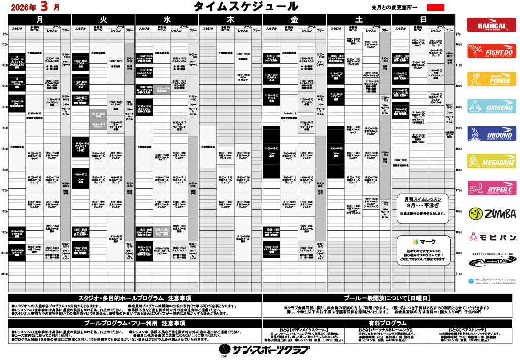 おとなフィットネス プログラムタイムスケジュール【3月版】を公開しました。